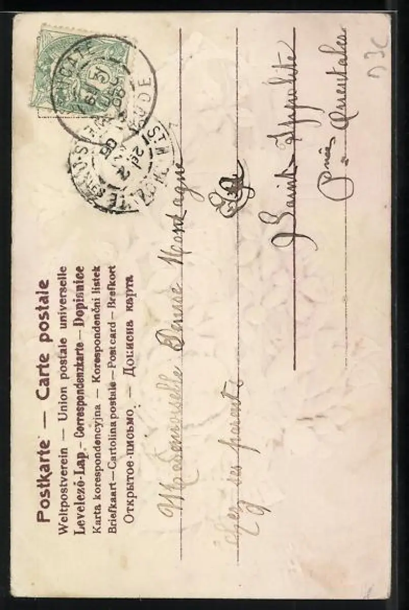 alte Ansichtskarte, gelaufen 1906, Eckknicke unten, Bugspur oben, guter Zustand