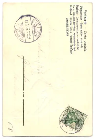 alte Ansichtskarte, gelaufen 1907, Eckknick re. oben, guter Zustand