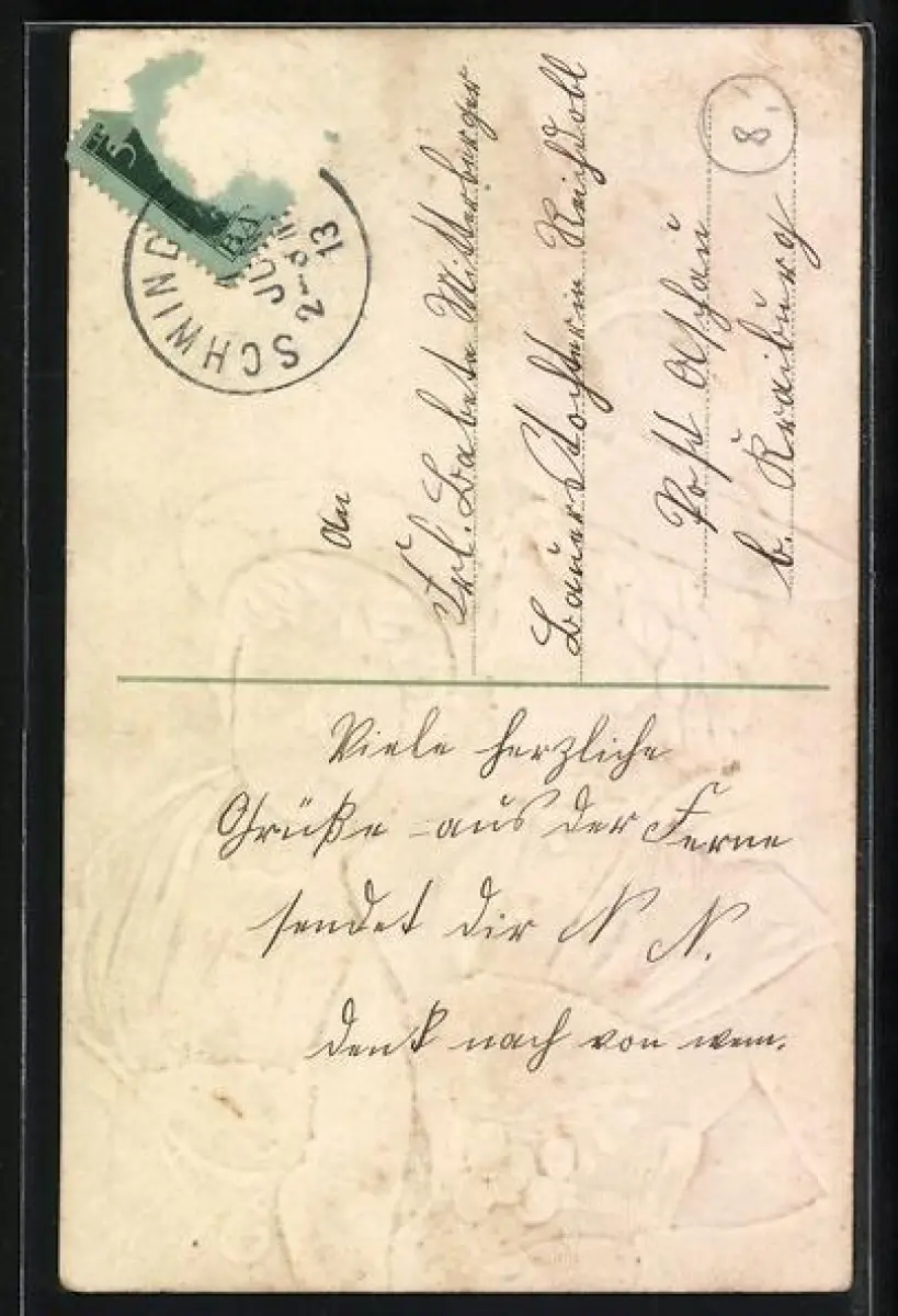 alte Ansichtskarte, gelaufen 1913, Briefmarke entfernt, rückseitig Oberflächenschaden, Eckknick li. oben, guter Zustand