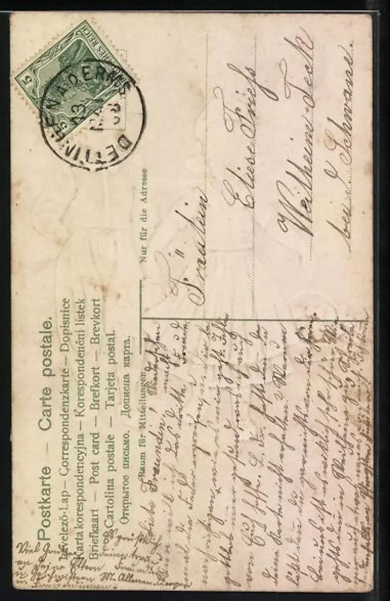 alte Ansichtskarte, gelaufen 1908, Eckknick li. oben, guter Zustand