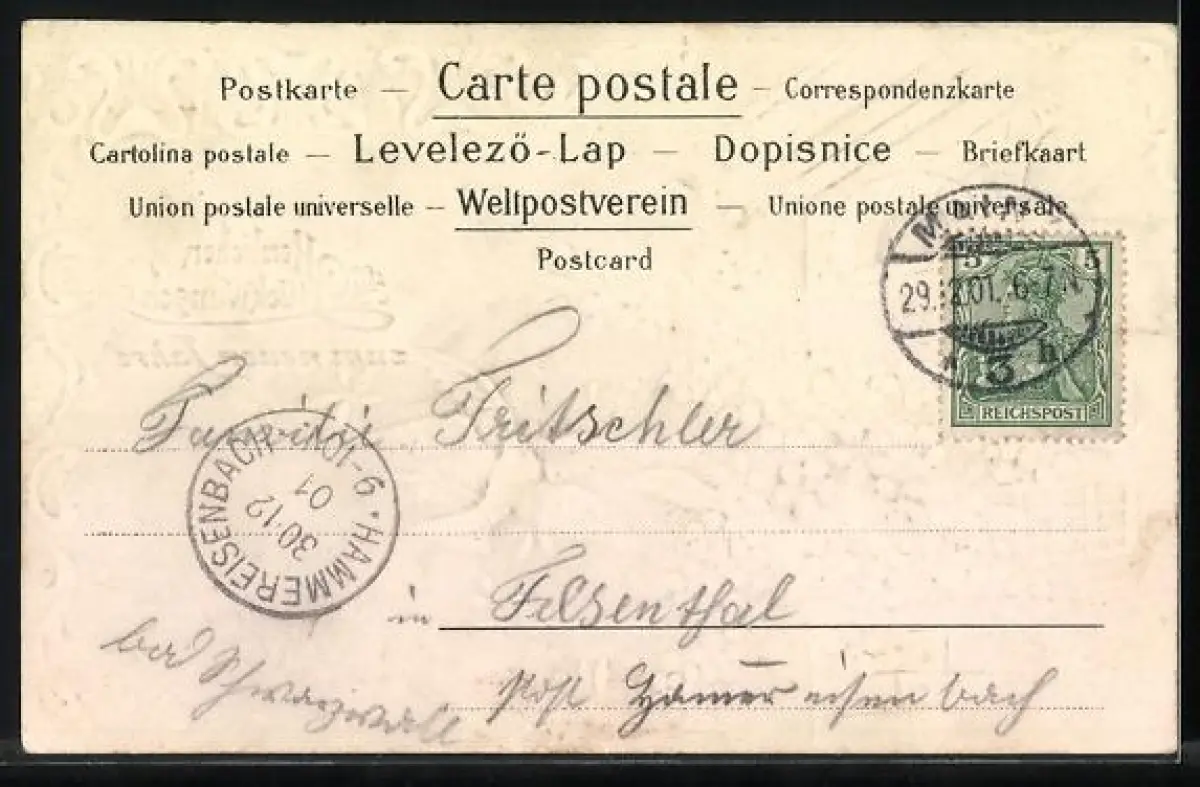alte Ansichtskarte, gelaufen 1901, Stempelspur, guter Zustand