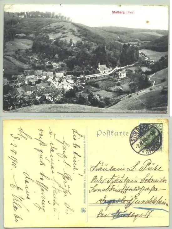 Artikelbeschreibung u. Zustand : Siehe Scan. Weitere Infos : Alte Ansichtskarte "Stolberg (Harz)". PLZ-Bereich 06547. Beschrieben u. postalisch gelaufen mit Marke u. Stempel von 1910.