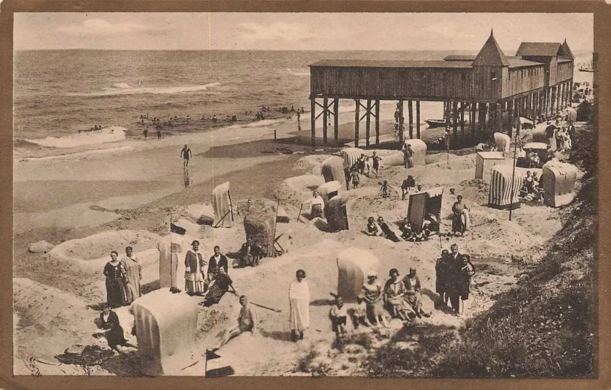 Strand mit Familienbad Ostseebad Rewahl Pommern Postkarte AK 1925