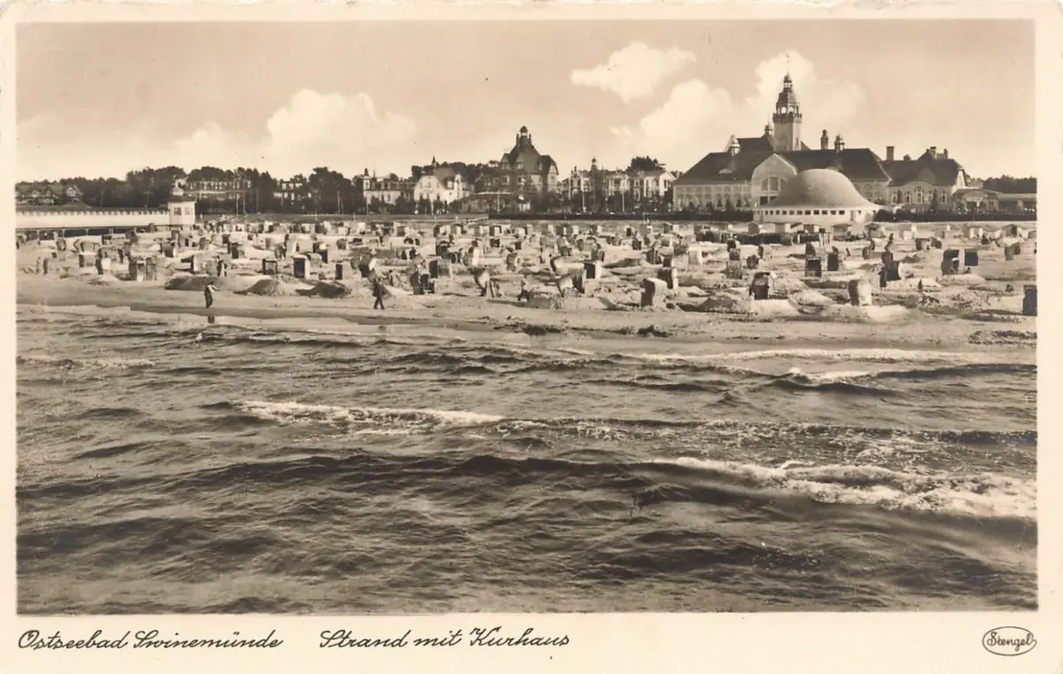 Strand mit Kurhaus Ostseebad Swinemünde Pommern Postkarte AK 1941