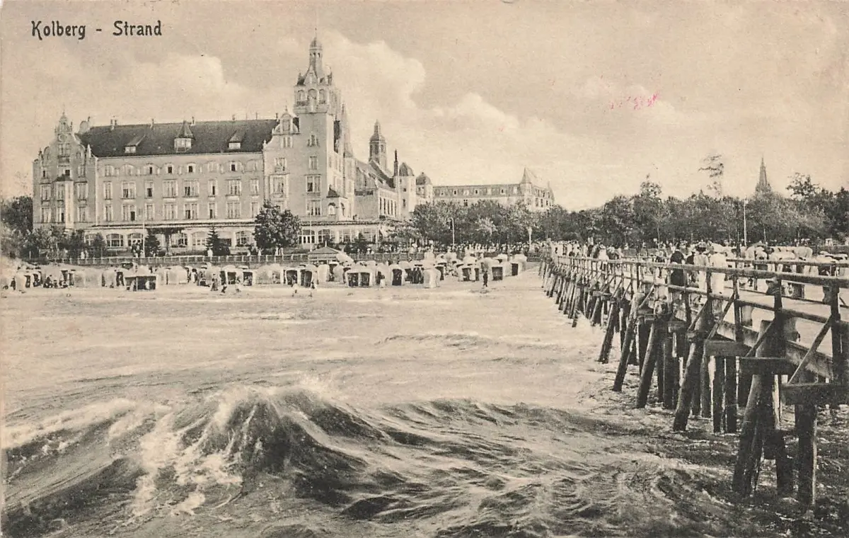 Strand mit Steg und Kurhaus in Kolberg Pommern Postkarte AK 1928