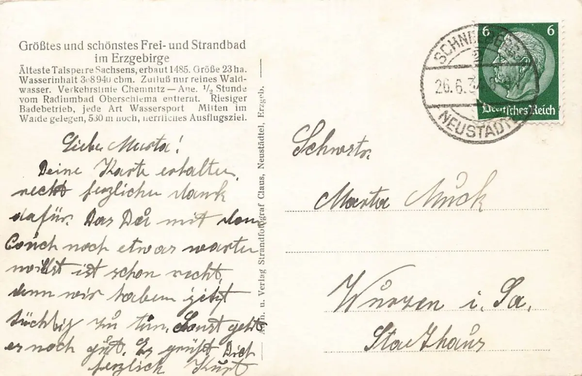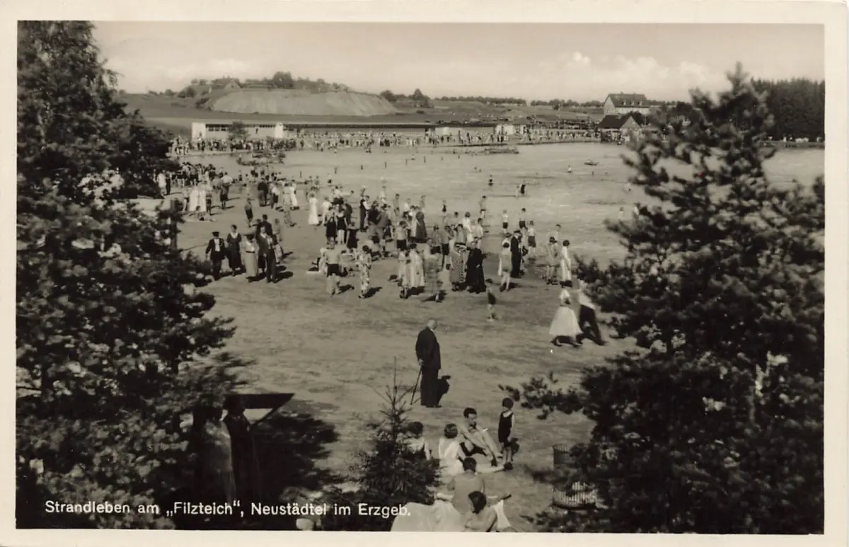 Strandleben am Filzteich Neustädtel Erzgebirge Sachsen Postkarte AK 1934