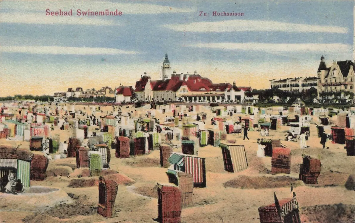 Strandleben zur Hochsaison Ostseebad Swinemünde Pommern Postkarte AK