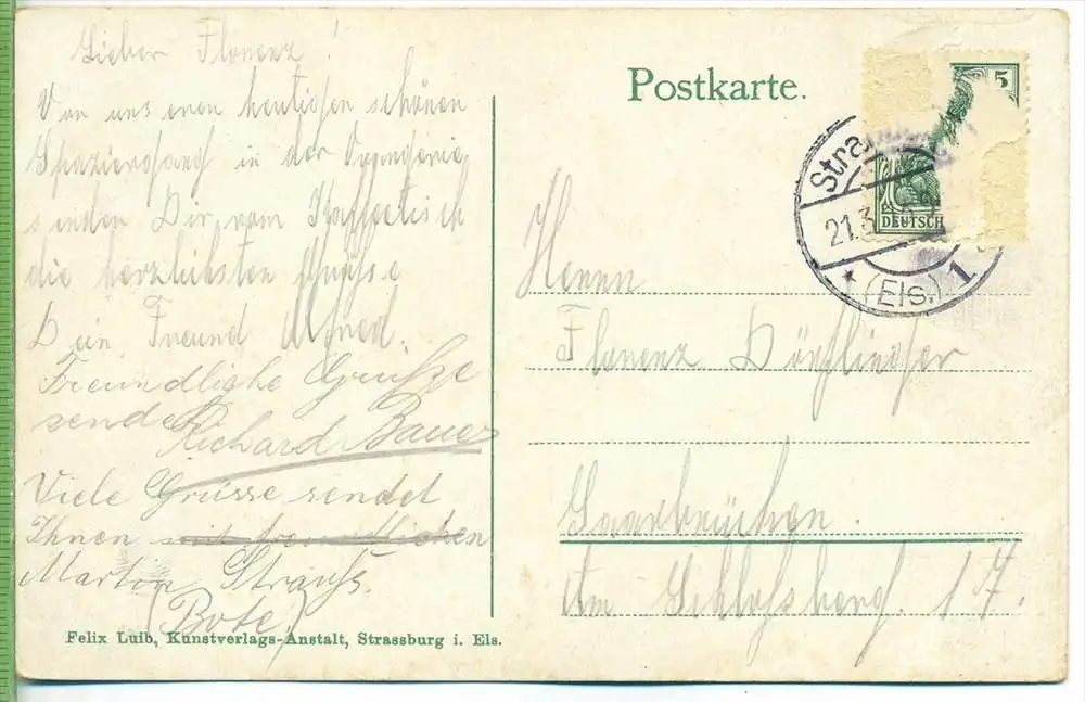 ohne Frankatur, mit Stempel, Stassburg 21.3.15