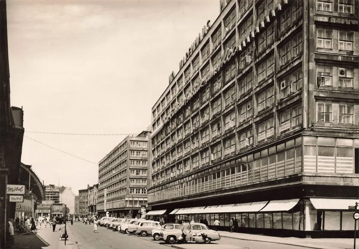 Straßenansicht mit Pkws HO-Warenhaus am Alex Berlin Postkarte AK