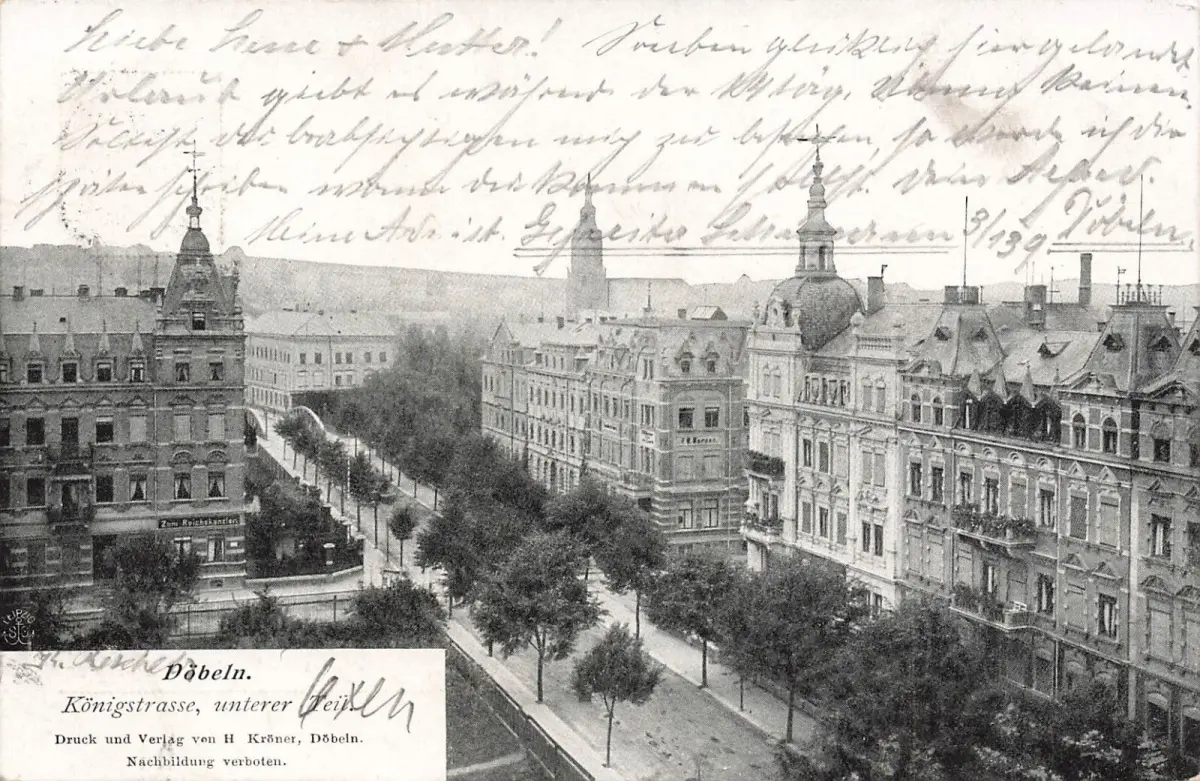 Straßenansicht unterer Teil Königstrasse in Döbeln Sachsen Postkarte AK 1903
