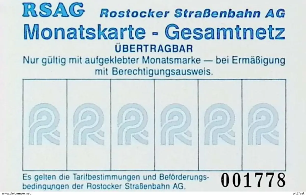 Strassenbahn Rostock , 1991 , alte Monatskarte , Fahrkarte , RSAG , Rostocker Straßenbahn AG !!