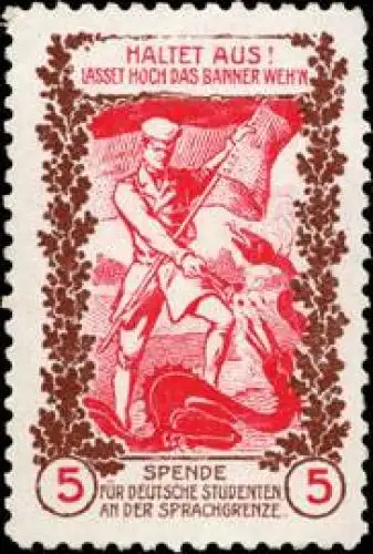 Lasset hoch das Banner wehn. Spende für deutsche Studenten an der Sprachgrenze, rot, braun, Größe/Zustand: 4x3 , guter Zustand, Original alte Reklamemarke die seinerzeit für die Werbung benutzt wurde