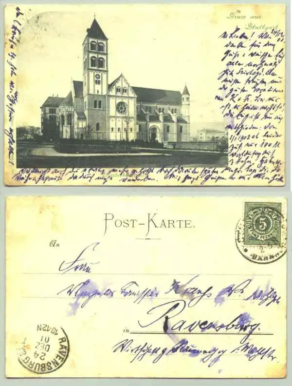 Stuttgart 1901 (intern : 1020113) Artikelbeschreibung u. Zustand : Siehe Scan. Weitere Infos : Alte Ansichtskarte "Stuttgart - Elisabethenkirche". PLZ-Bereich pauschal 70173. Beschrieben u. postalisch gelaufen mit Briefmarke u. Stempel von 1901