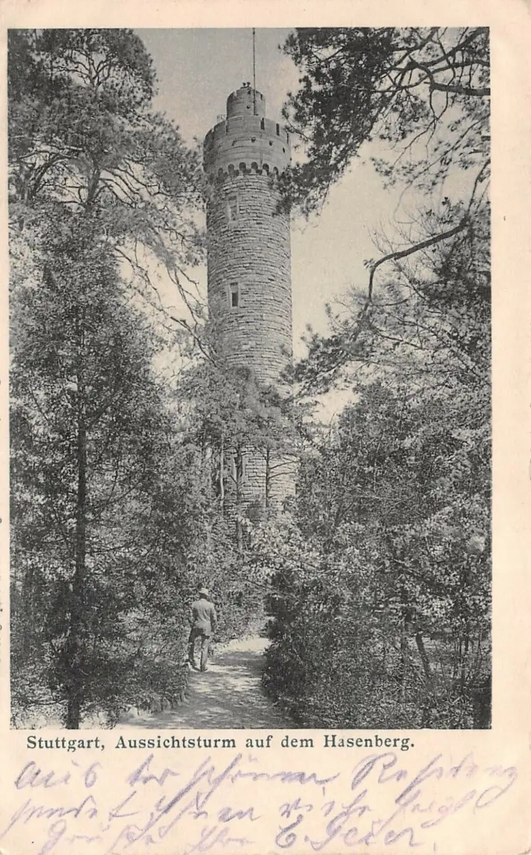 Stuttgart Aussichtsturm auf dem Hasenberg Baden-Württemberg Postkarte AK 1903