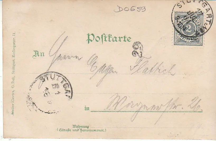 Stuttgart Gruß von Eugen Ziegler an Eugen Flattich gl1901 D0659