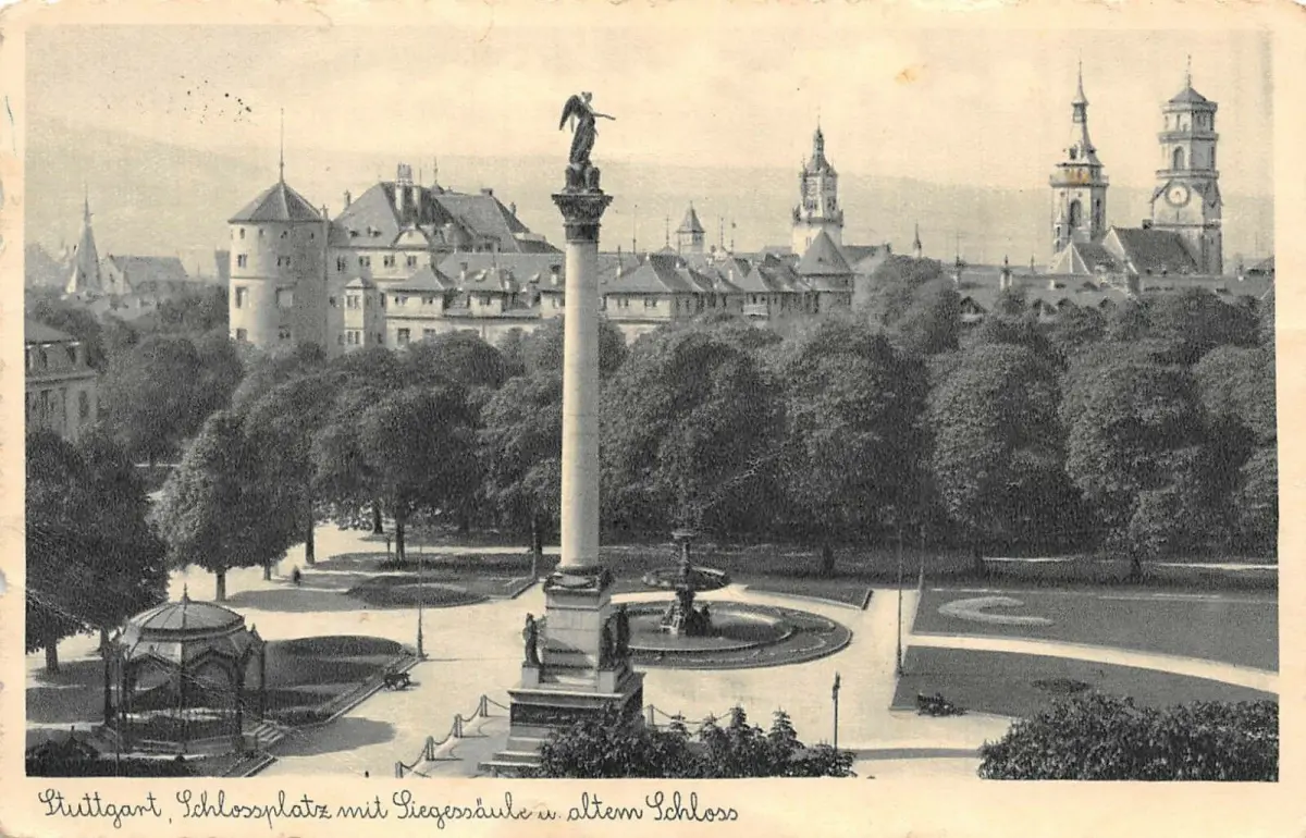 Stuttgart Schlossplatz mit Siegessäule u. altem Schloss Feldpostkarte AK 1940