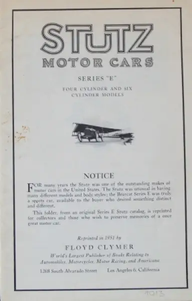 Stutz Motor Cars Series E Modellprogramm 1913 Automobilprospekt (4519)