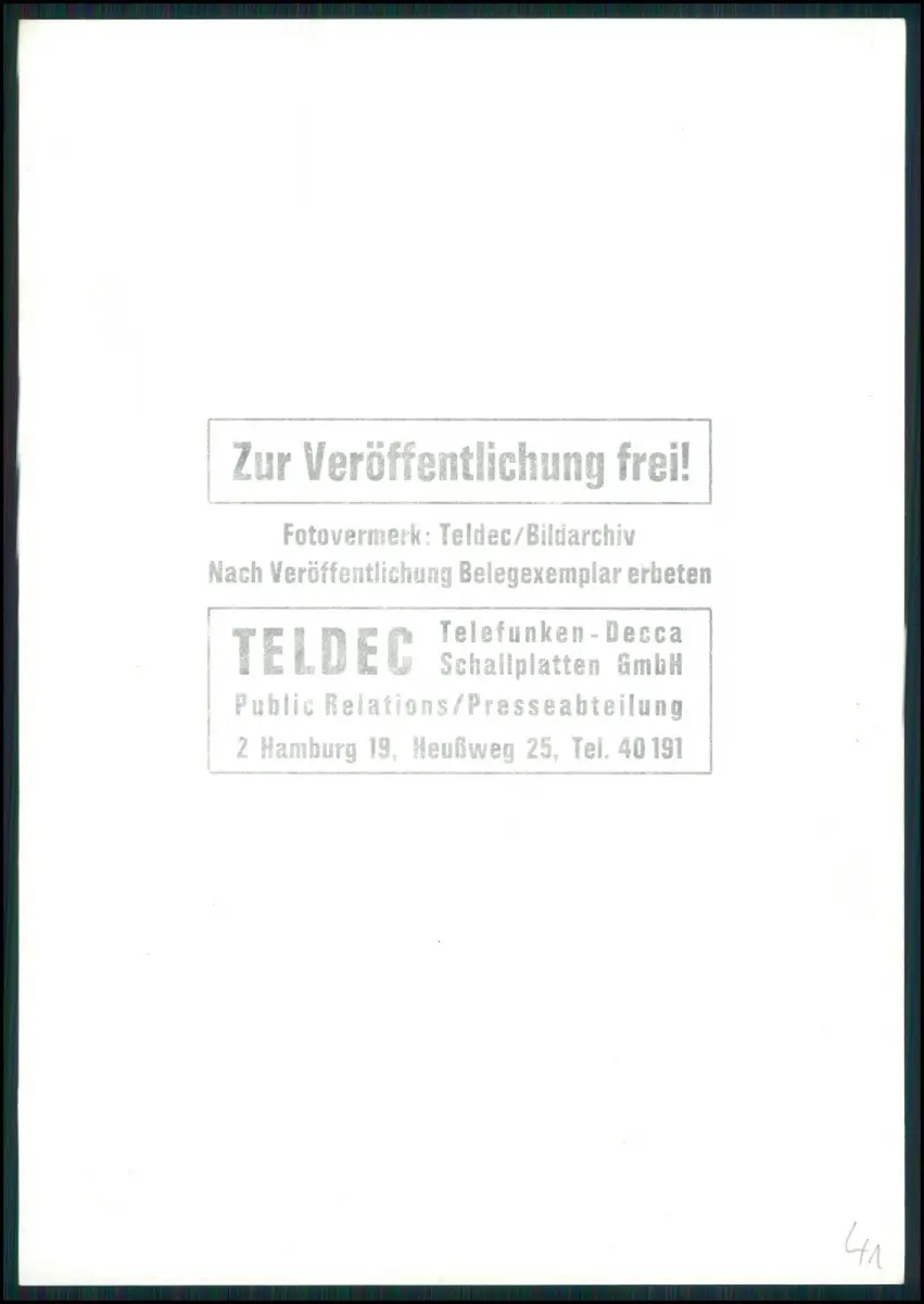 Das hier angebotene Original-Pressefoto stammt direkt aus dem Telefunken-Musikarchiv und diente für Werbe- und Pressezwecke zu ihren Veröffentlichungen.