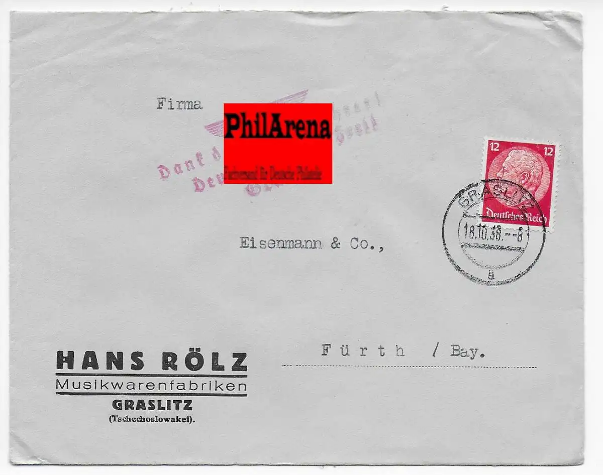 Sudentenland: Graslitz 1939 nach Fürth/Bayern
