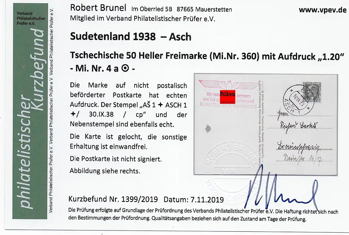 Sudetenland 1938 - Asch: MiNr. 4a, gestempelt auf AK Zeltlager