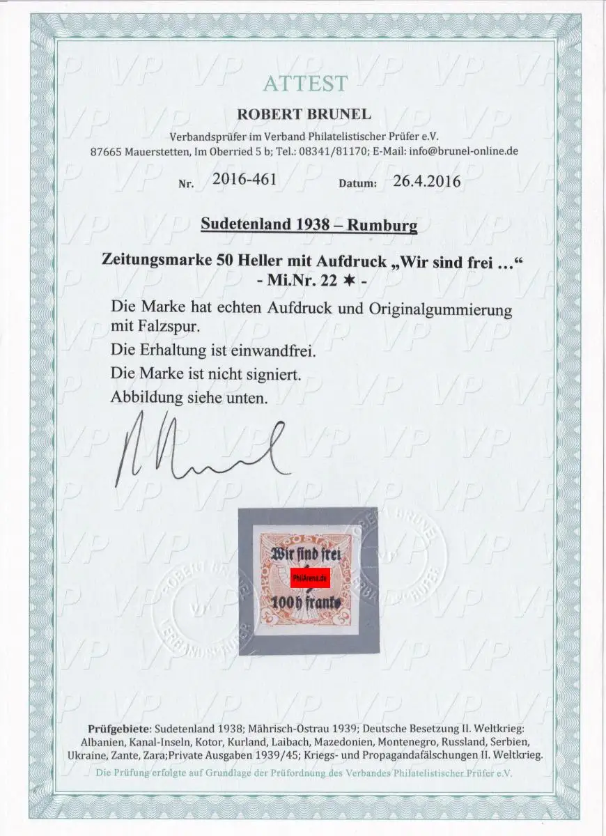 Sudetenland: MiNr. 22, *, Rumburg