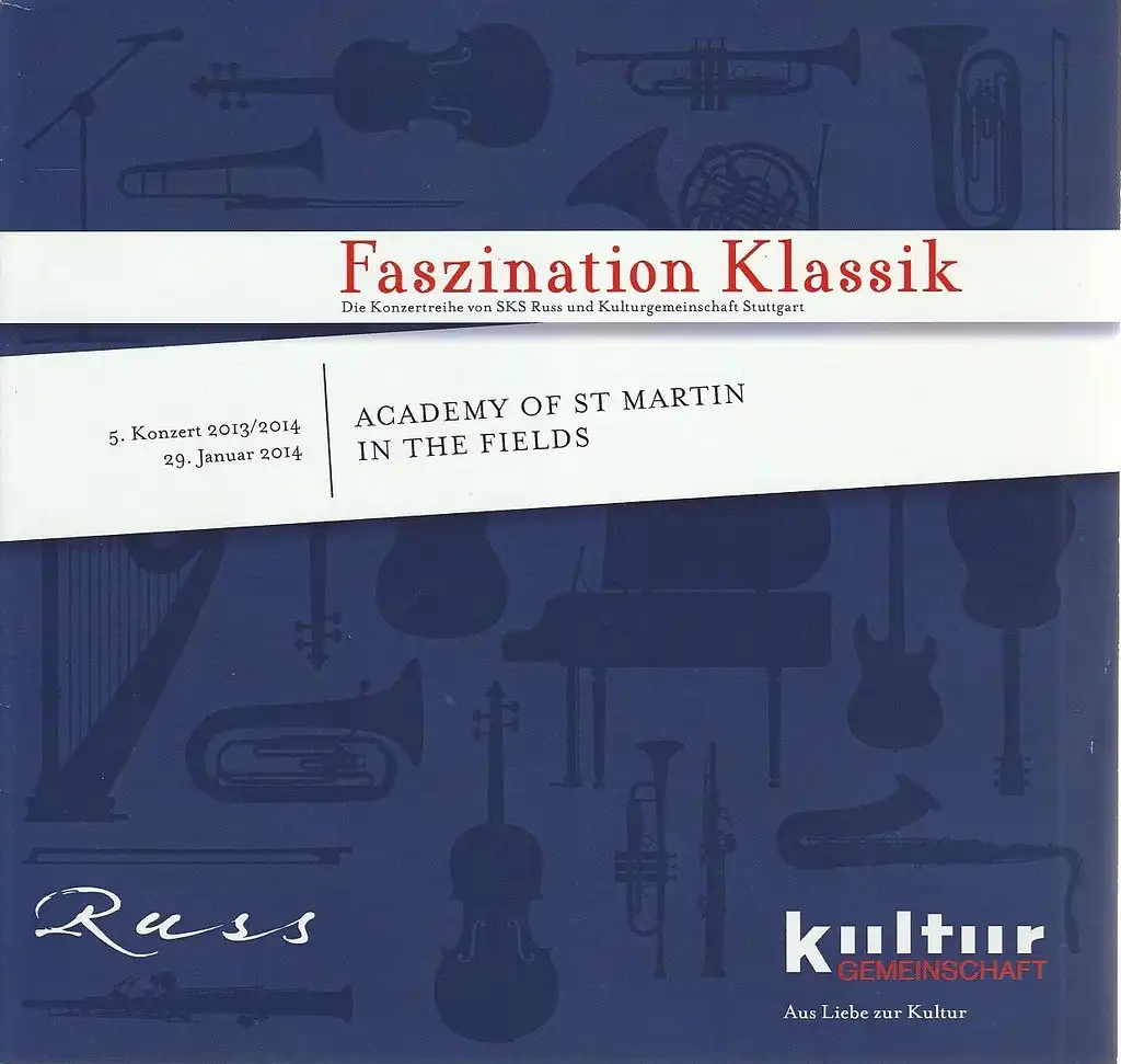 Südwestdeutsche Konzertdirektion Stuttgart Erwin Russ: Programmheft FASZINATION KLASSIK ACADEMY OF ST MARTIN IN THE FIELDS 29. Januar 2014 Beethoven-Saal 5. Konzert 2013 / 2014.