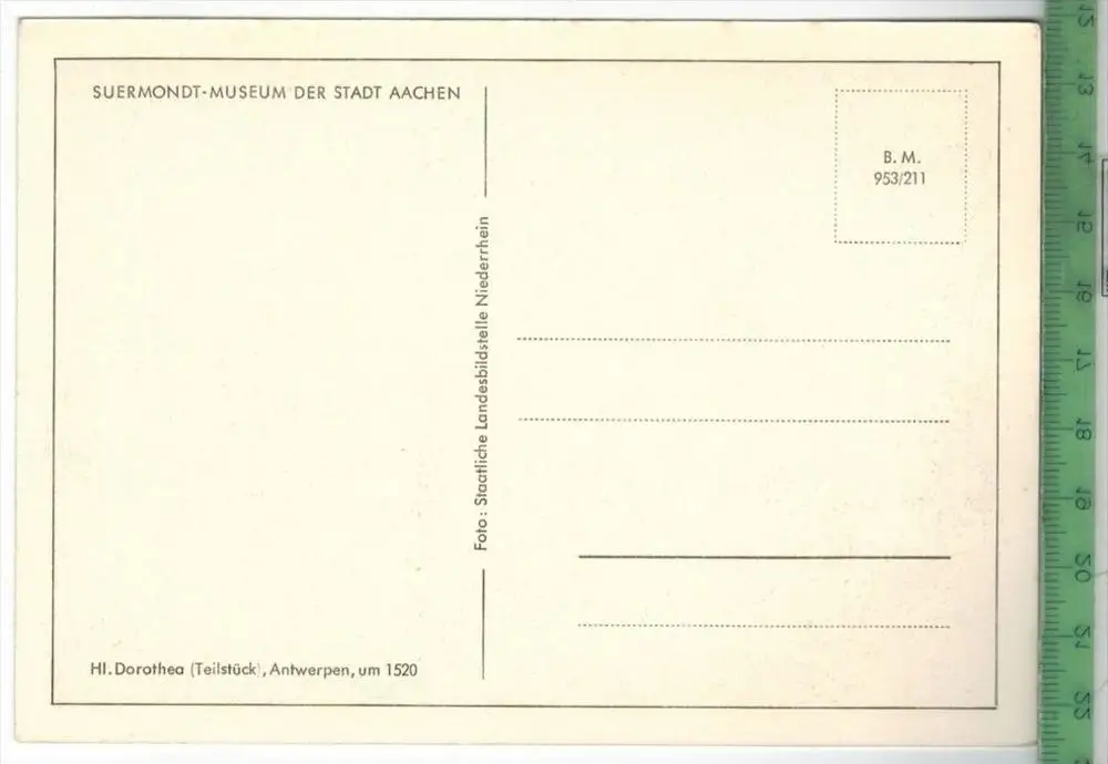 Suermondt-Museum der Stadt Aachen, Hl. Dorothea (Teilstück) , Antwerpen, um 1520, Verlag: Staatl. Landesbildstelle Niederrhein, – Postkarte, unbenutzte Karte, Maße: 15 x10,5 cm, Erhaltung:I-II, Karte wird in Klarsichthülle verschickt.(H)