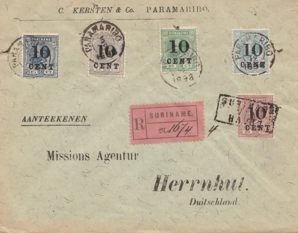 Surinam 1898_ regostered Paramaribo to Herrnhut/Germany