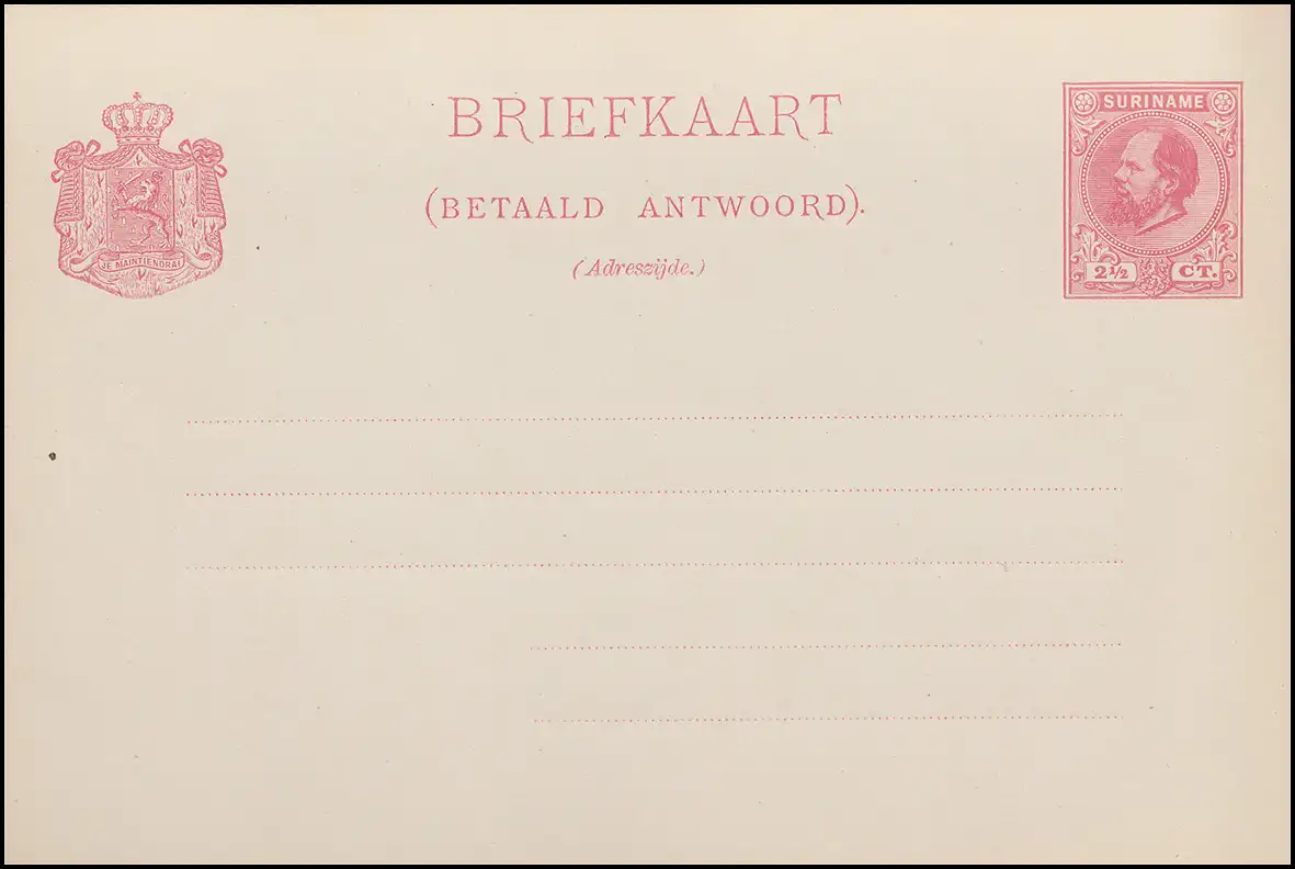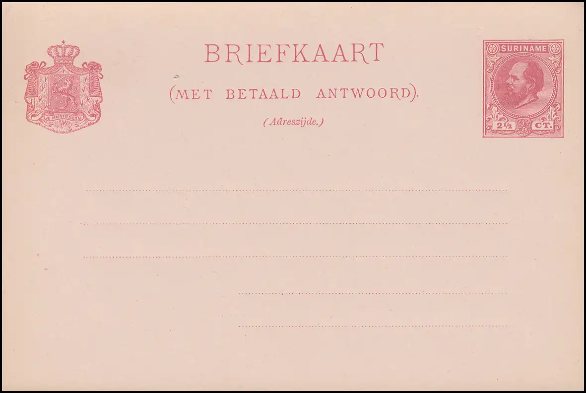 Surinam Doppel-Postkarte / Double Post Card 2 1/2 - 2 1/2 Ct., ungebraucht **