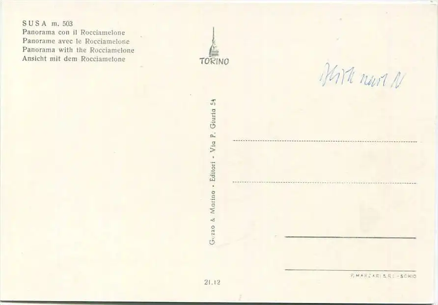 Susa - Panorama con il Rocciamelone - AK Grossformat - Gozzo & Marino Editori Torino