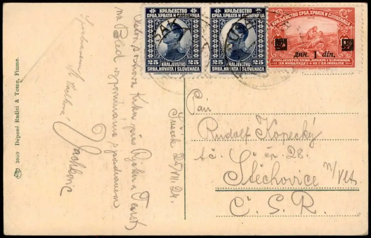 Susak Rijeka Sušak Fiume/Reka Sušak-Pećine Stadt 1924 gel. Mischfrankatur
