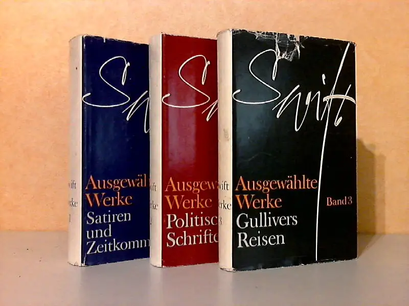 die Seiten und der Einband sind altersbedingt fleckig, Umschlagkanten mit teils starken Bestoßungen, abgegriffen, BAND 1: Satiren und Zeitkommentare BAND 2: Politische Schriften Band 3: Gullivers Reisen Beschreibung vom Antiquariat Ardelt 3j6b Antiquariat Ardelt