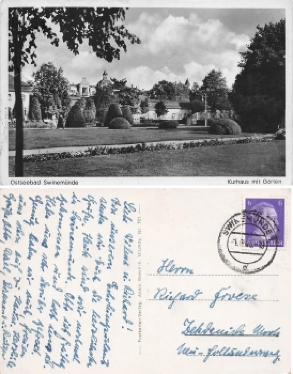 Swinemünde Pommern Kurhaus mit Garten Swinoujscie o 1943