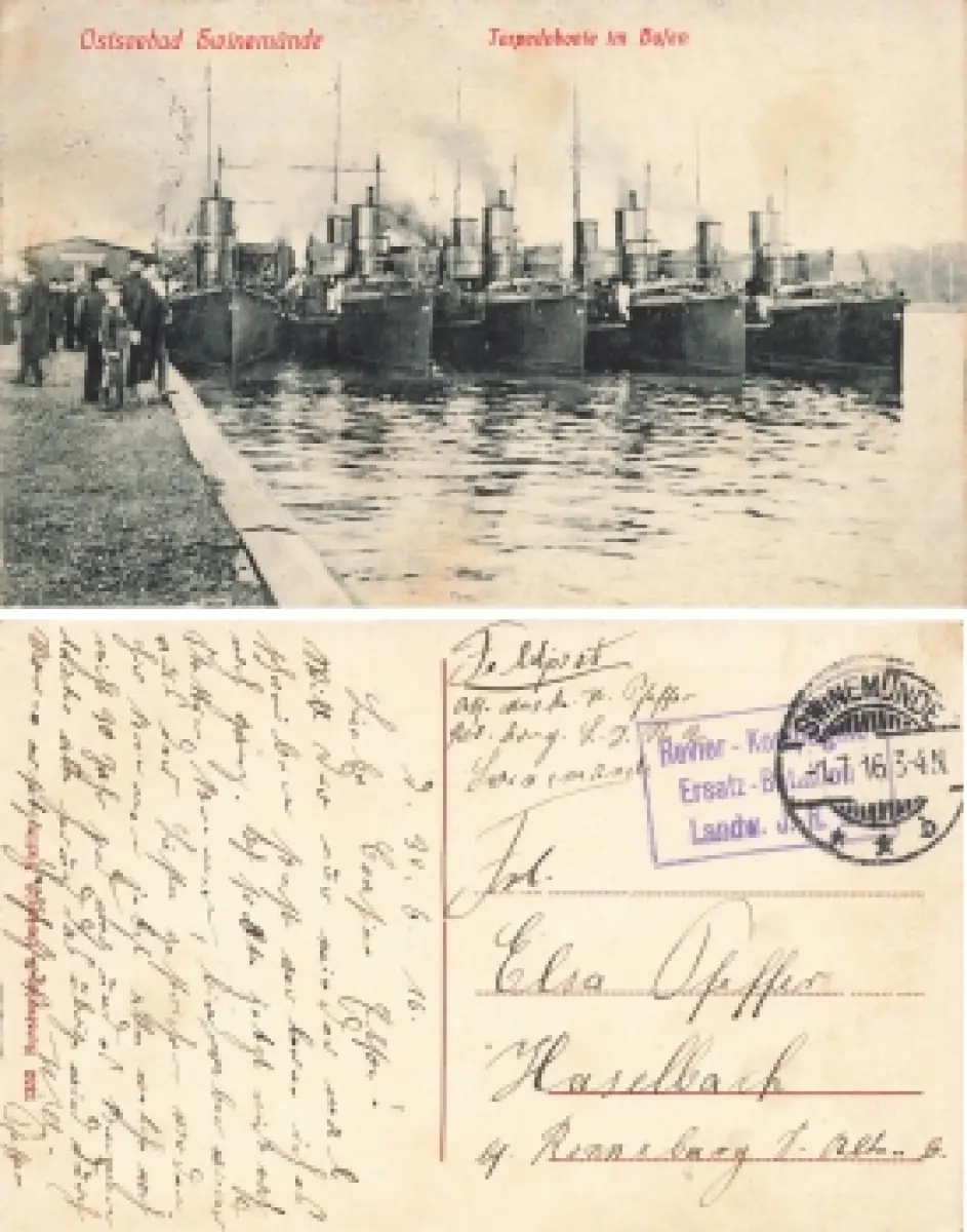 Swinemünde Pommern Torpedoboote im Hafen Swinoujscie Feldpost 1916Revier Komp. Ersatz Batailon Landw. J. R.