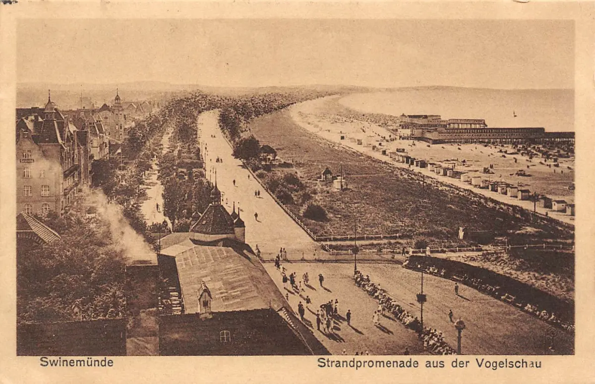 Swinemünde Świnoujście Vogelschau Strandpromenade Postkarte 1927