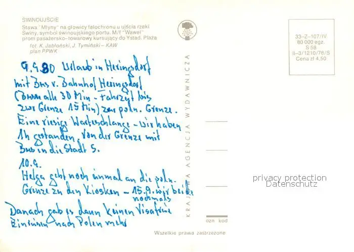 Swinoujscie_Swinemuende Stawa Mlyny Swiny symbol swinousjskiego portu Plaza Swinoujscie Swinemuende postalisch nicht gelaufen 1980 Erhaltung siehe scans [WerneD78] WernPID7