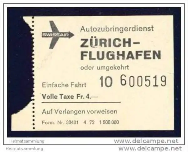 Swissair - Autozubringerdienst Zürich Flughafen oder umgekehrt 1972