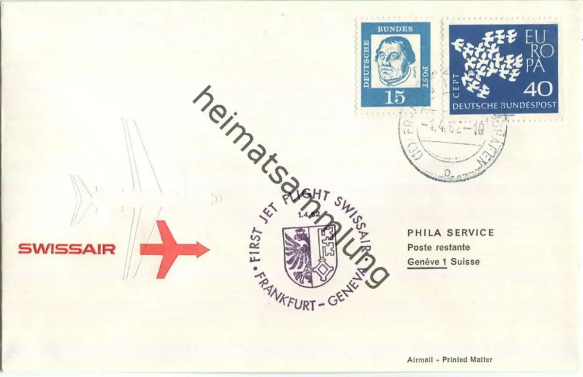 Swissair - First Jet Flight - Caravelle - Frankfurt-Genf 1962 - Prägedruck