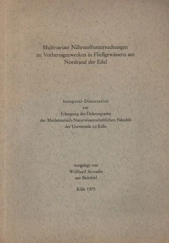 Symader, Wolfhard: Multivariate Naehrstoffuntersuchungen zu Vorhersagezwecken in Fliessgewaessern am Nordrand der Eifel. (Dissertation).
