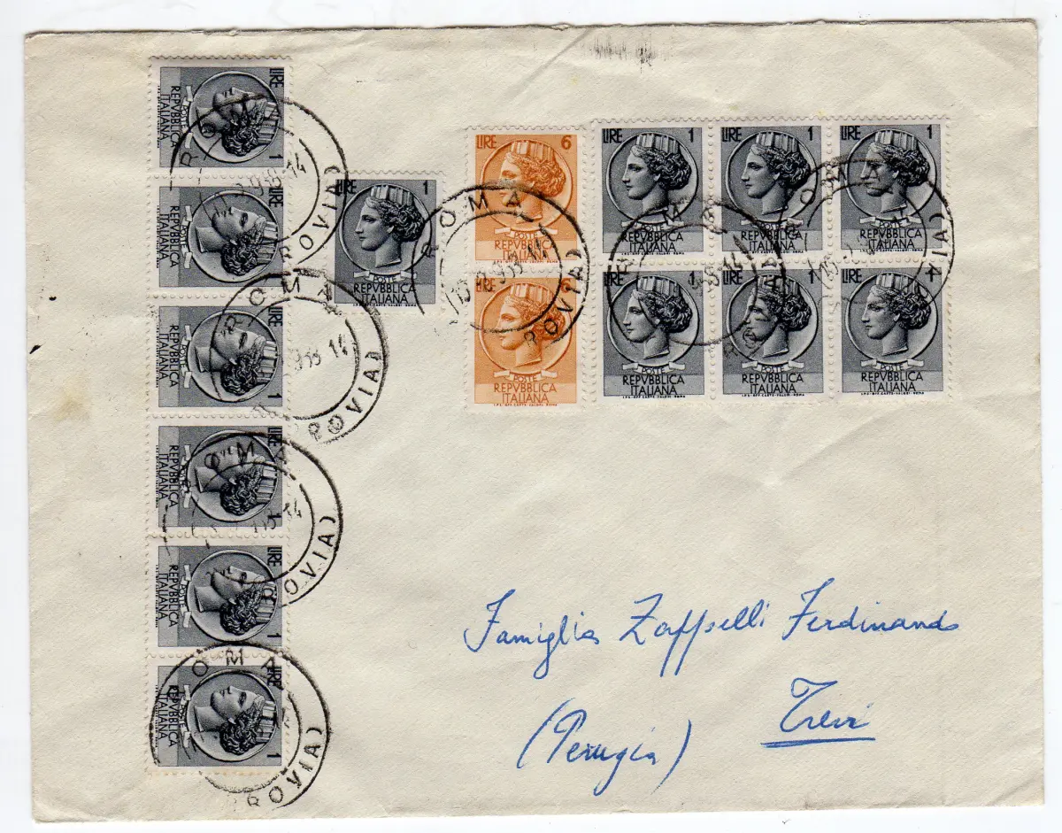Syrakus 1 Lira Nr. 761 zehn Exemplare + Ergänzung Nr. 843 auf Umschlag für Trevi - Selten, im Tarif Cod. 312/15