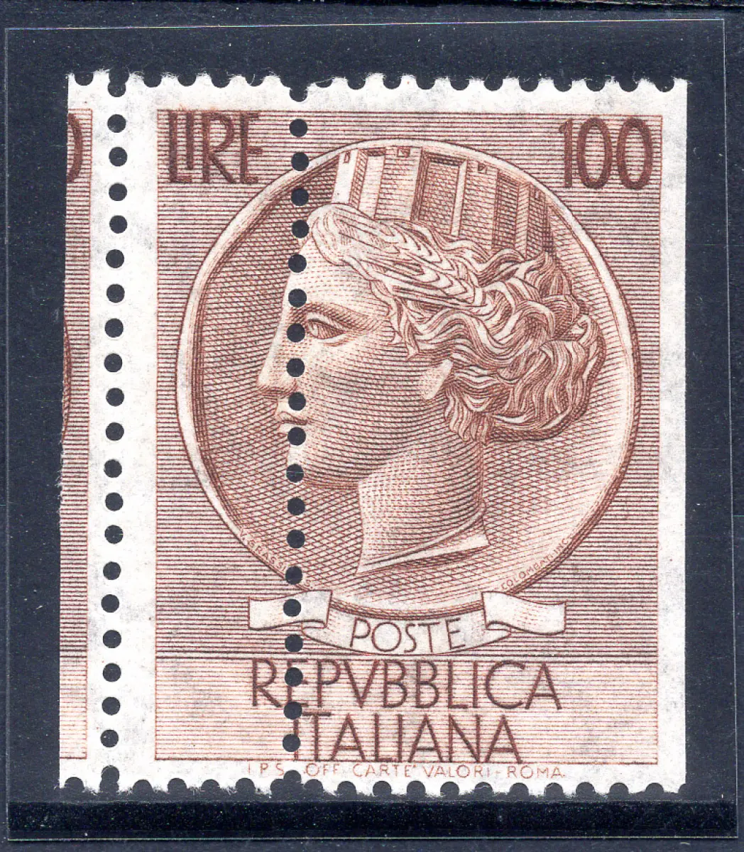 ** MNH - Syrakus Lire 100 Nr. 785 schönes Exemplar mit stark nach links verschobener senkrechter Zahnung rechts - Selten (816/19)