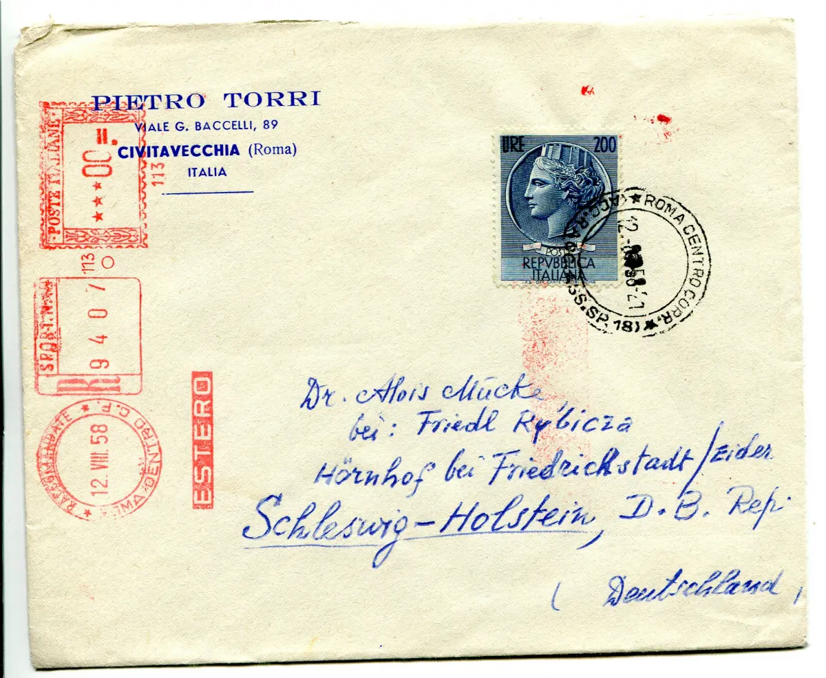 Syrakus Lire 200 isoliert auf Umschlag exp. für Deutschland - Syrakus Lire 200 Nr. 816 isoliert auf Umschlag Exp. für Deutschland am 12.8.58 - Uncommon Code 586/3