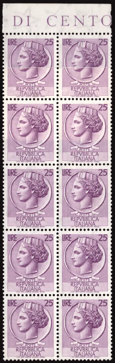 MNH - Vollgummi - Syrakus Lire 25 Sterne I Nr. 769h Block von zehn Exemplaren, davon vier auf Sammelpapier gedruckt - Selten - Kat. euro 2.600 Cod. 771/17
