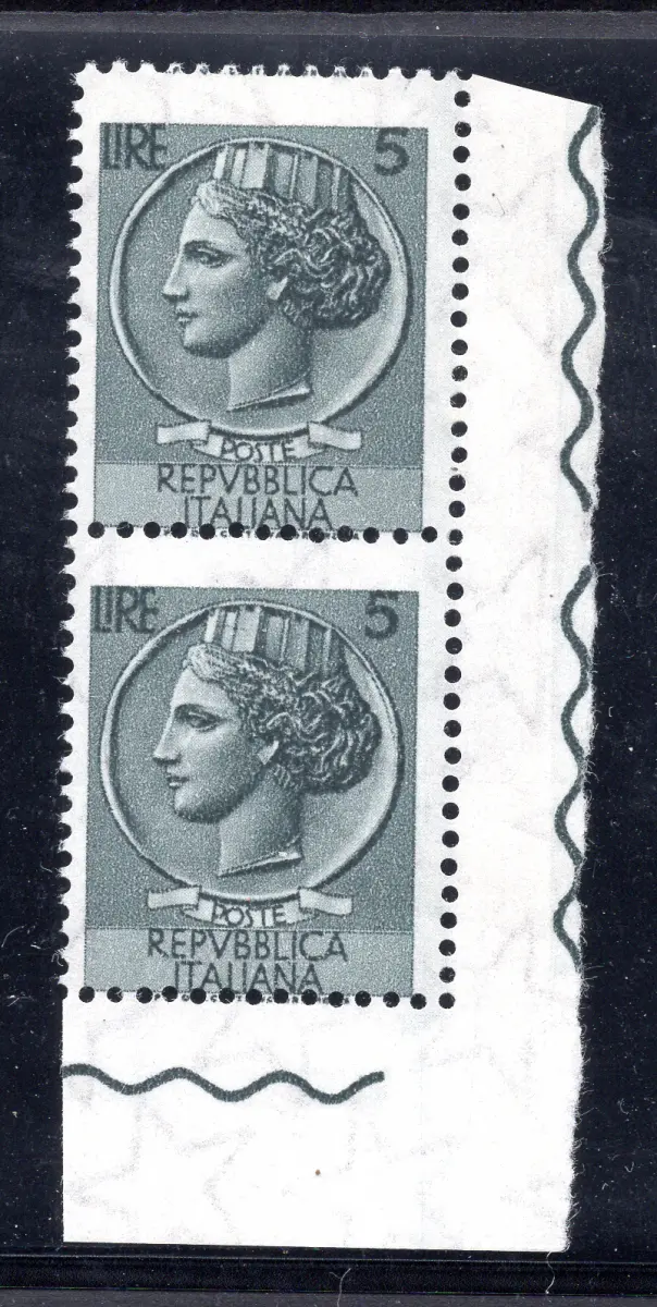 Syrakus Lire 5 Sterne I. Sorte verschobene Verzahnung Vollgummi - Syrakus Lire 5 Sterne I. Nr. 762i Paar a. von f. mit horizontaler Verzahnung nach oben verschoben - Ungewöhnlich Cod. 594/13