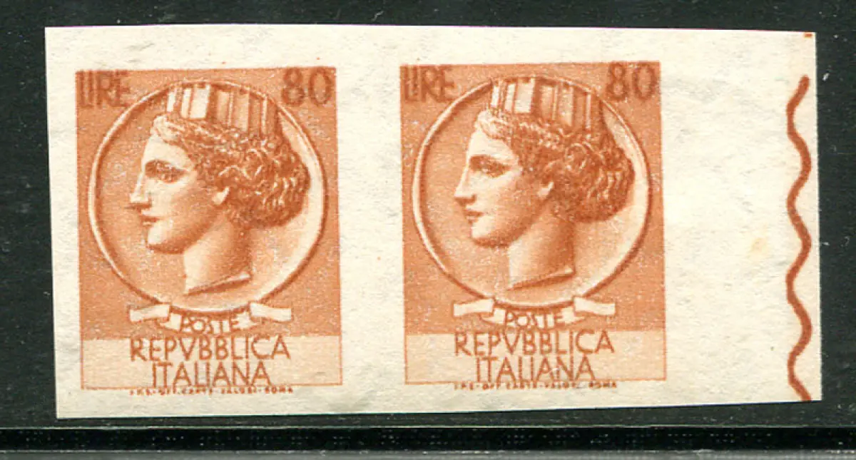 Syracusana Lire 80 (Vinyl) ungezahntes Paar Vollgummi - Syracusana Lire 80 (Vinylkautschuk) Nr. 1080l ungezähntes horizontales Drehmoment - Ungewöhnlich Cod. 743/13