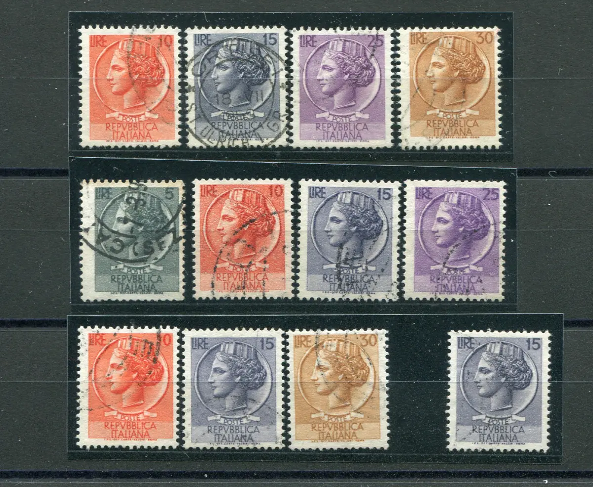Syrakus Spulenausgabe 11 Werte gebraucht - Syrakus Spulenmarkenausgabe - Die elf Werteserie mit filigranen Sternen I und IV vertikal und Sternen II liegend (Nr. B764/B770, B762/I-769/I, B764/II-B770/II) - Sehr hochwertiges Set - Cert. Della Casa für die edlen 5 Lire - Kat. 1.540 Code 540/11