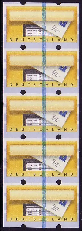 TEST-Automatenmarke Briefkasten (Samkyung) 5er-Streifen mit Nummer, postfrisch