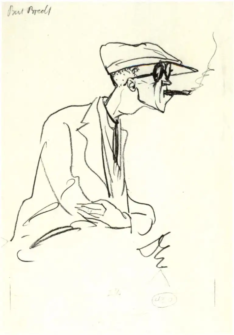 THEATER - Bert Brecht bei der Regieprobe, Bleistiftzeichnung B.F. Dolbin