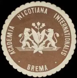 Academia Nicotiana Internationalis, Brema, Tabakwaren, Siegelmarke, Größe/Zustand: 5 , guter Zustand, Original alte Reklamemarke die seinerzeit für die Werbung benutzt wurde