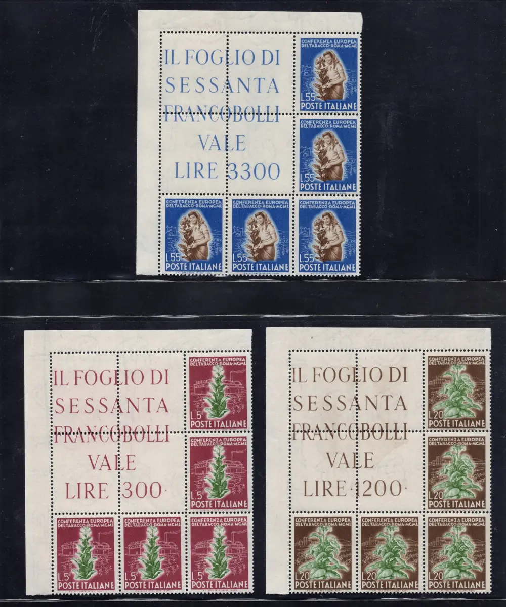 MNH - Vollgummi - Tabakkonferenz Nr. 629/631 die Eckblockserie von fünf Exemplaren (Eckblockkatalog Nr. 11/13) einwandfrei, gut zentriert mit Vollgummi - Selten - Kat. euro 1600 Cod. 2857/WEB